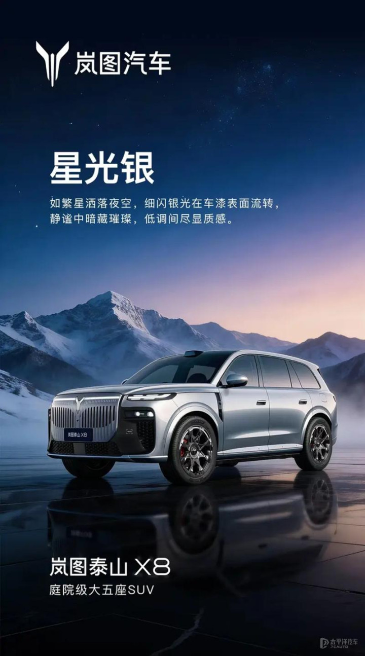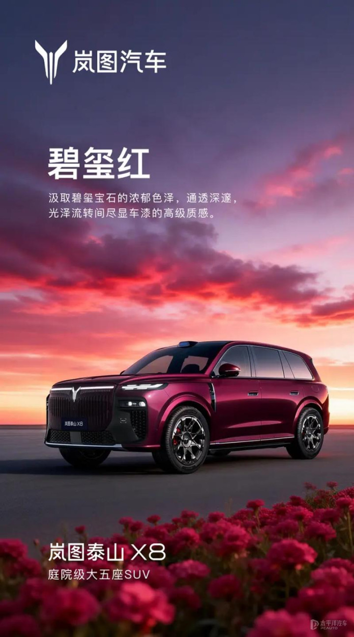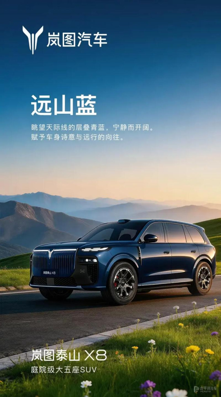 【太平洋汽车 新车频说念】近日,岚图汽车官方公布岚图泰山X8六款车色。包含玄英黑、杜若白、宸星灰、星光银、碧玺红、远山蓝。据悉,泰山X8瞻望将于2026年上半年认真上市。
