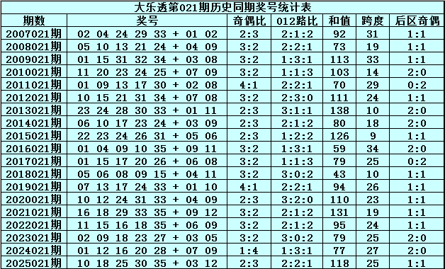 后分手析:在第021期历史同时开奖中,后区奖号一奇一偶出现11次,全奇出现6次,全偶出现2次,本年第021期瞻望后区开出全奇组合,参考两码01和11。