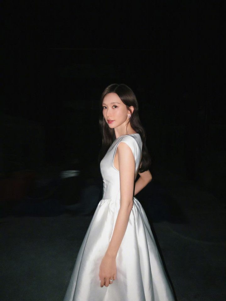 纯白色无袖缎面裙是林志玲优雅气质的极致抒发,缎面面料泛着柔软光辉,无袖筹画展露纤细手臂。视力解析又怜惜,在光影的烘托下,扫数东说念主洁白得如同天神。