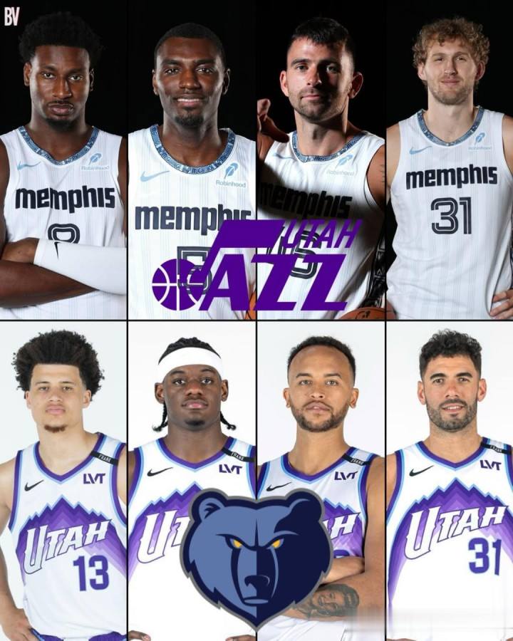 这笔交易不仅打乱联盟格局,更标志着爵士正式结束“摆烂时代”,向争冠行列迈出关键一步。 交易详情 爵士获得: 小贾伦·杰克逊(Jaren Jackson Jr.) 约翰·孔查尔(John Konchar) 乔克·兰代尔(Jock Landale) 文斯·威廉姆斯(Vince Williams Jr.) 灰熊获得: 小沃尔特·克莱顿(Walter Clayton Jr.) 凯尔·安德森(Kyle Anderson) 泰勒·亨德里克斯(Taylor Hendricks) 乔治·尼昂(Georges Niang) 四枚未来首轮选秀权:2027年首轮(来自爵士/森林狼/骑士中顺位最高者)2027年湖人首轮(前四顺位保护)2031年太阳首轮(无保护) 灰熊:彻底重建,果断“清仓”