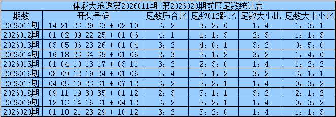 前区余数012路分析:上期前区余数012路比为3:2:0,0、1、2路余数奖号走势基本相等,前10期奖号余数012路个数比为24:15:11,0路奖号推崇最热,0路余数奖号莫得出现轮空情景,1、2路余数奖号分离轮空1期和3期,本期防2路余数号码走冷轮空,展望0、1路余数奖号基本合手平,参考奖号余数012路比2:3:0。 前区余数大中小分析(大尾:7-9,中尾3-6,小尾0-2):上期奖尾号码大中小比为1:1:3,最近5期奖尾号码大中小个数比开出6:9:10,前10期奖尾号码大中小个数比为10:24:16,澳客app本期谨慎小尾号码走冷轮空,看好大尾号码火爆开出,奖尾号码大中小比参考4:1:0。 前区余数质合分析:上期前区包含3个质尾奖号:01、21、23,开出2个合尾奖号:10、29,最近10期前区奖号质合余数个数比为27:23,质尾奖号开出比例较高,本期防质尾号码转冷,展望合尾号码走势大热,柔和3个合尾奖号。 前区余数大小分析:上期前区包含1个大尾奖号:29,开出4个小尾奖号:01、10、21、23,最近10期前区奖号大小余数个数比为19:31,小尾奖号走势相比活跃,本期谨慎小尾号码走冷,看好大尾奖号回补,展望开出4个大尾奖号。